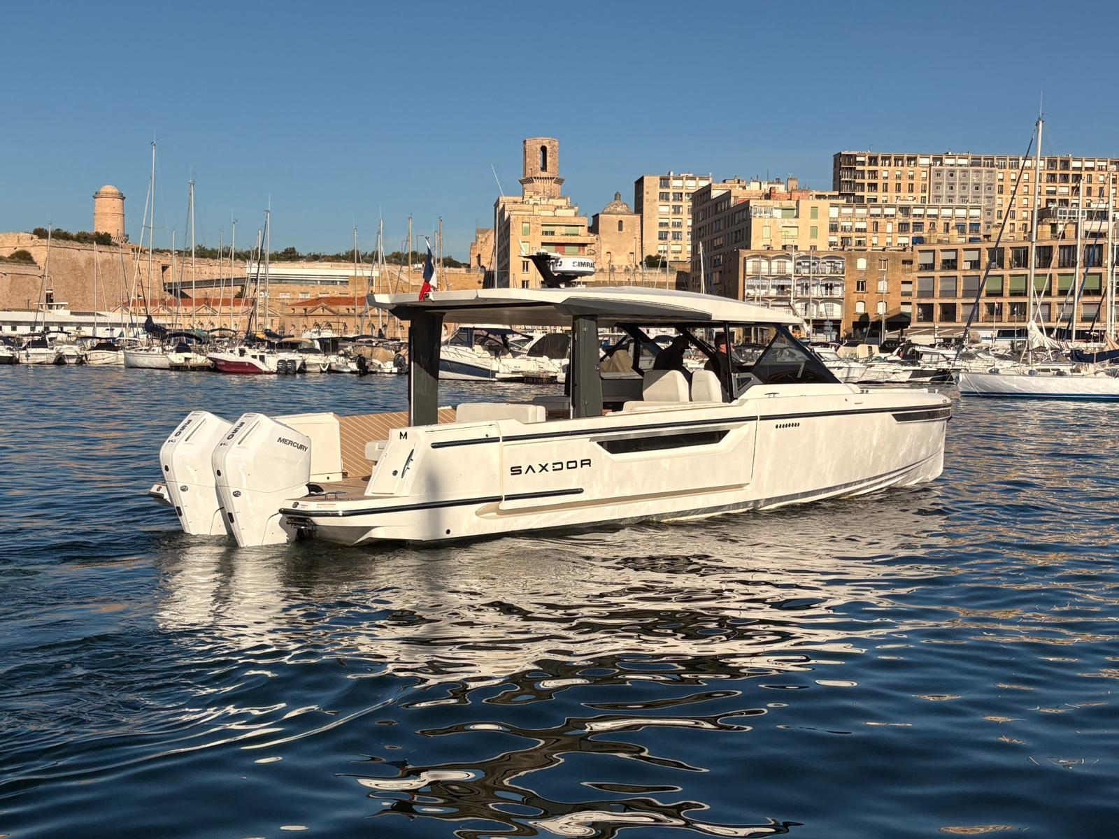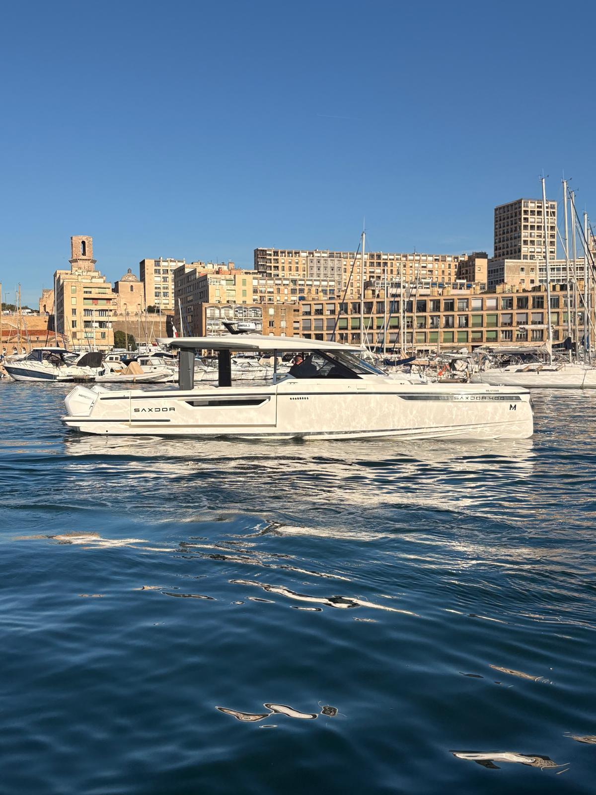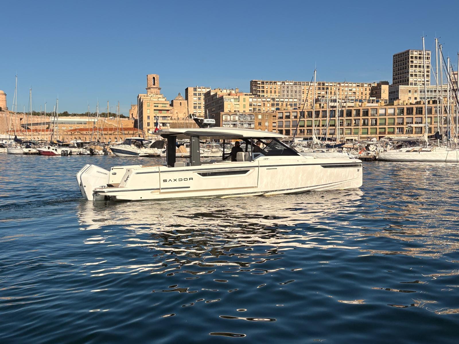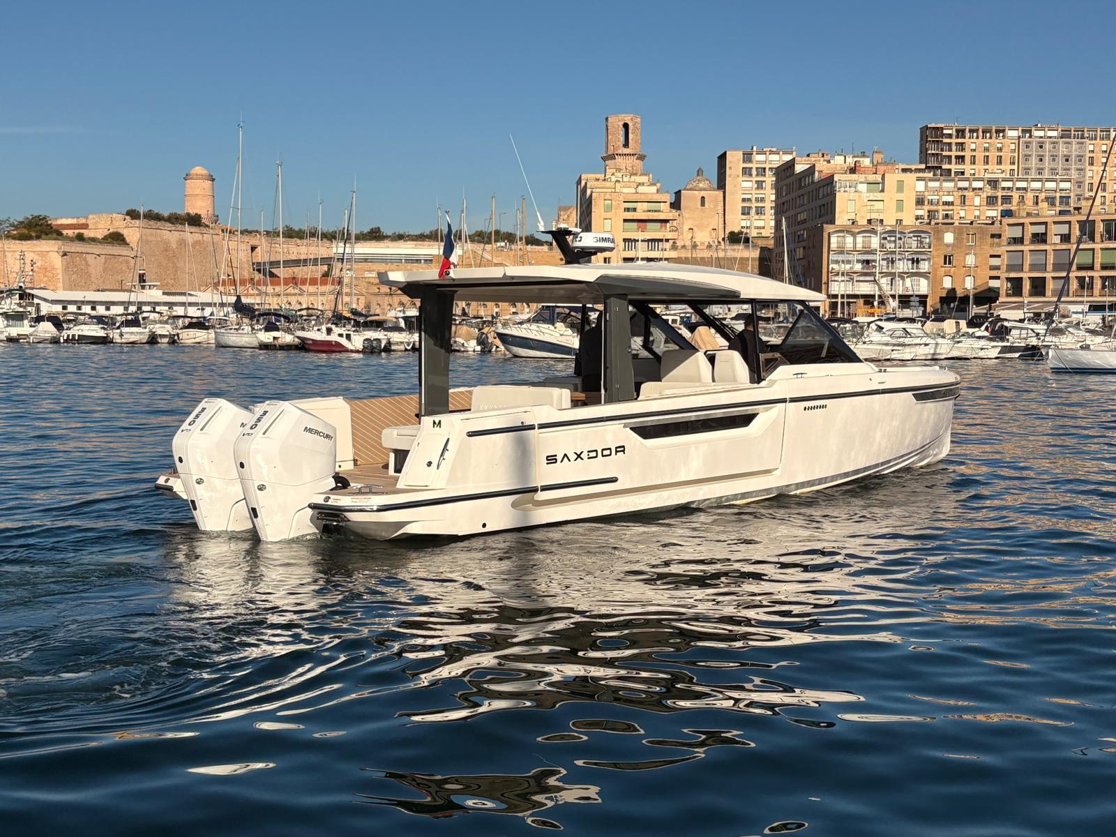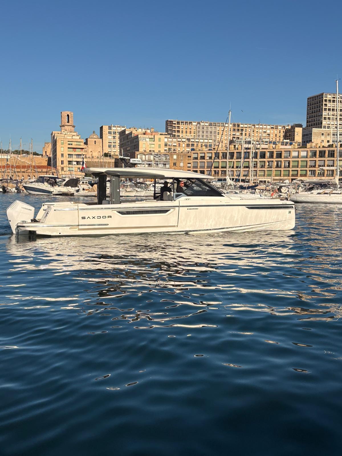 Découvrez ce Saxdor 400 GTO millésime 2024, une unité exceptionnelle alliant performance, confort et design contemporain. Avec ses lignes sportives et ses aménagements ingénieux, ce modèle est idéal pour des sorties en mer en toute convivialité et sécurité.