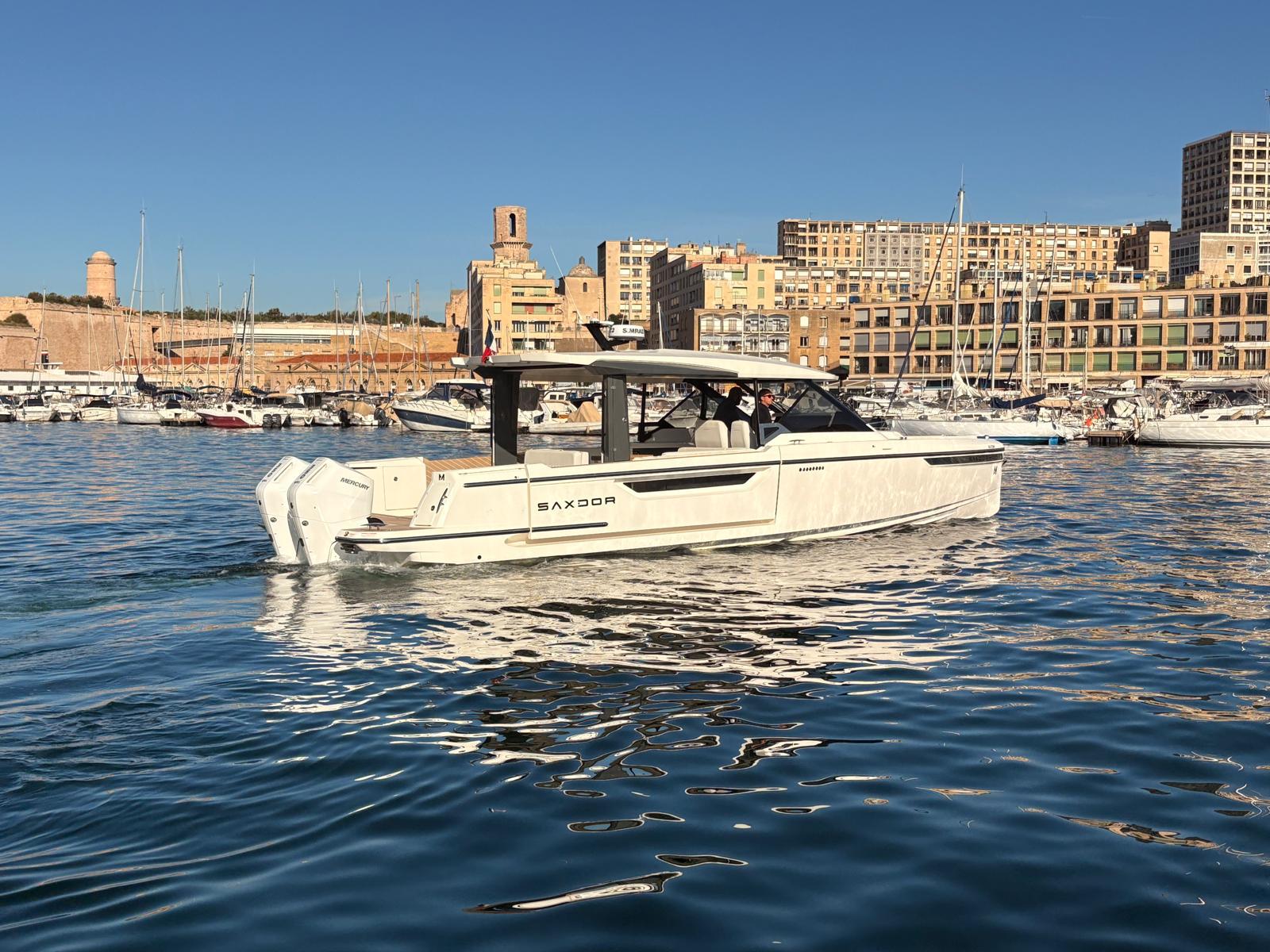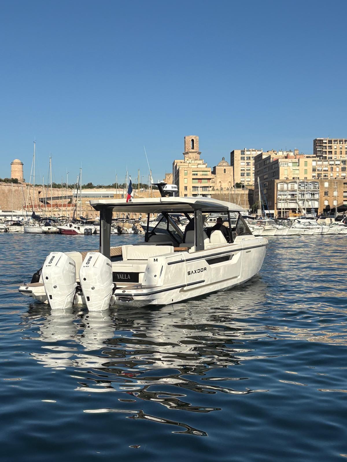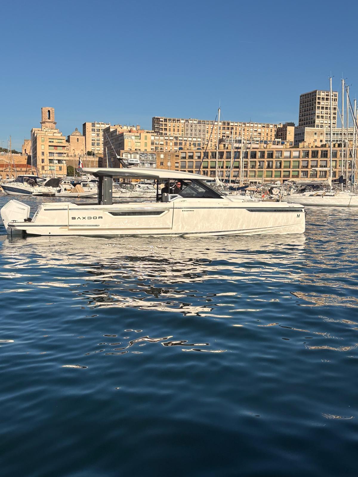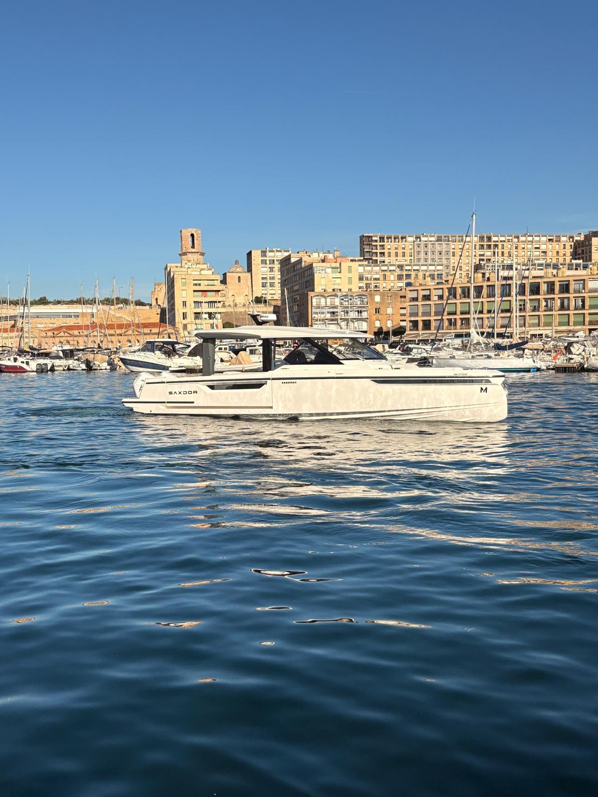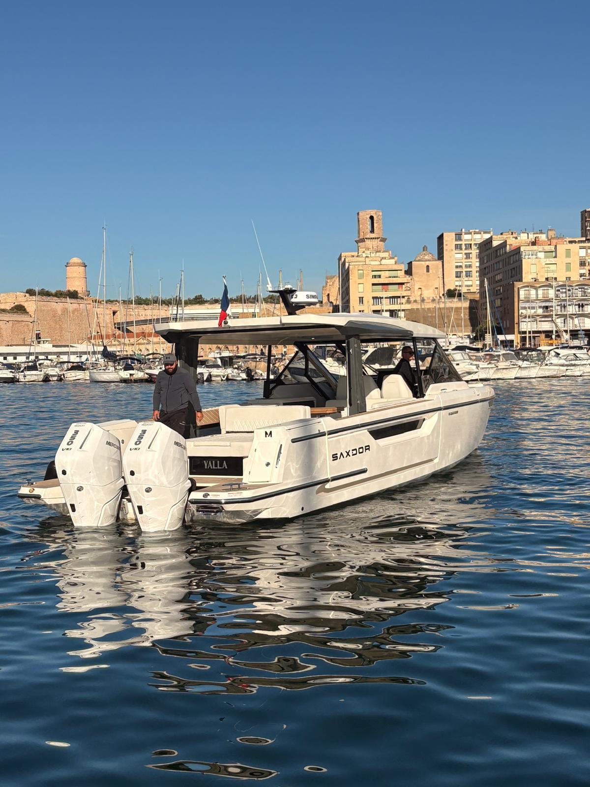 Découvrez ce Saxdor 400 GTO millésime 2024, une unité exceptionnelle alliant performance, confort et design contemporain. Avec ses lignes sportives et ses aménagements ingénieux, ce modèle est idéal pour des sorties en mer en toute convivialité et sécurité.